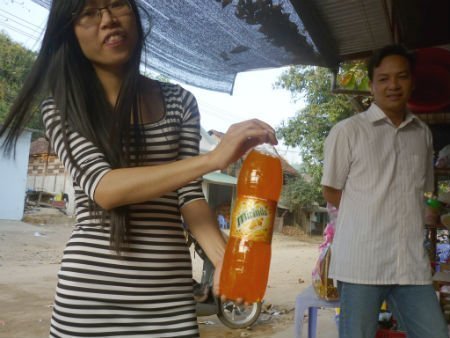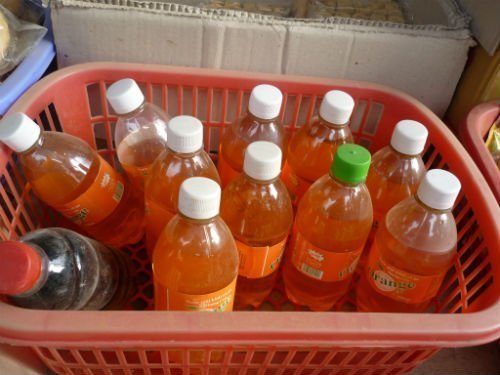 | Những chai nước cam "siêu rẻ" được bán phổ biến tại các chợ quê |