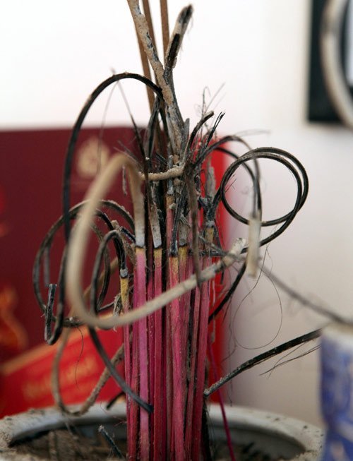 Trong vai một chủ hàng đi tìm mối làm nhang đậu tàn với số lượng lớn, chúng tôi tiếp xúc K., chủ một cơ sở sản xuất nhang có tiếng ở Bảo Khê. Vừa theo K. bước vào khu xưởng sản xuất, chúng tôi đã cảm thấy ngạt thở bởi mùi hắc nồng nặc. Xưởng này sản xuất đủ các loại nhang, từ nhang thẻ, nhang cuốn, nhang đậu tàn đến nhang trầm.
