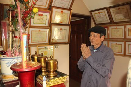 Ông Giáo tại gian thờ của đại gia đình.