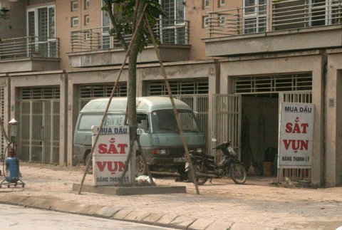 Tại khu đô thị mới Văn Phú, ngay mặt đường cũng xuất hiện một nhà liền kề đồng nát, ngay cửa đã đề tấm biển “mua dầu, sắt vụn hàng thanh lý”. Xung quanh khu vực này, nhiều dự án lớn đang xây dựng đó chính là cơ hội kiếm lời của họ.