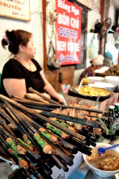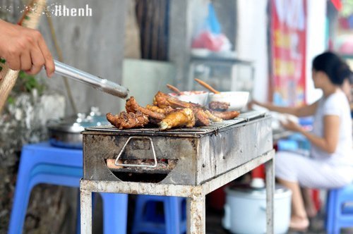 Quán bún chả nướng que tre nổi tiếng của ngõ Đồng Xuân.