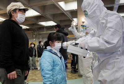 | Một em bé đang được kiểm tra độ phóng xạ tại thành phố Koriyama, cách nhà máy hạt nhân 60km về phía tây. |
