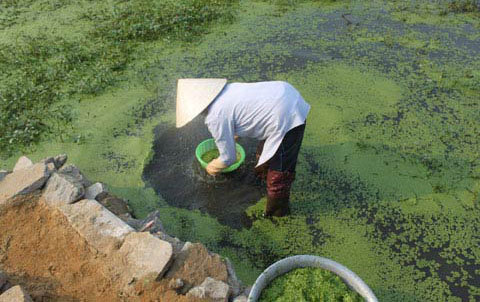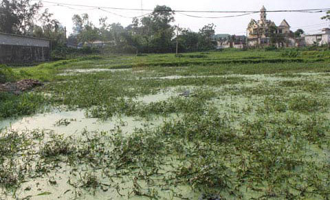 Phía sau Bệnh viện đa khoa Nghệ An (Bệnh viện Việt Nam - Ba Lan, phường Hưng Dũng, TP Vinh) là một cái ao tù rộng mênh mông. Nước ao đen và sền sệt. Trên đó là những cây rau muống chới với và cằn cỗi. Quan sát rộng ra thì nhiều chỗ rau muỗng bị lụi, chết rũ xuống nước đen. Bà chủ nhà số 10 trên đường Tôn Thất Tùng đứng dưới ao. Chân đi ủng, hai tay đeo găng cúi gập người xuống vớt bèo. Bà cho biết đang vớt bèo về cho gà ăn. Tuy nhiên do nước bẩn nên khi về nhà cũng phải rửa qua nước máy thì gà mới ăn được. "Nước thải bệnh viện cũng âm ỉ chảy ra đây đấy. Nước bẩn lắm", người phụ nữ này nói.