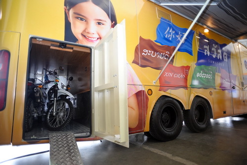 Trên xe còn có khoang để xe máy và xe đạp để các thành viên có thể di chuyển ở