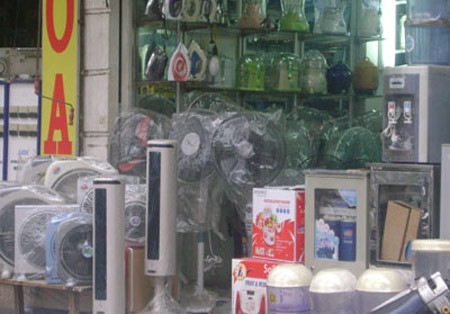 Dạo một vòng qua các "phố điện tử, điện lạnh" như Tôn Đức Thắng, Phố Huế, Hai Bà Trưng... các sản phẩm như điều hòa, quạt hơi nước, tủ lạnh đã được bày bán la liệt. Chủ cửa hàng điện lạnh Hồng Đức ở 205 Tôn Đức Thắng cho biết, "Đối phó với việc cắt điện luân phiên, sản phẩm được khách hàng tìm mua nhiều nhất hiện nay là các thiết bị tích điện, quạt hơi nước, máy phát điện..."