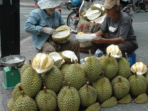 | Người tiêu dùng nên biết phân biệt: Sầu riêng chín cây có mùi thơm nồng dễ tách vỏ, sầu riêng chín ép rất khó tách vỏ. (Ảnh: Người lao động) |