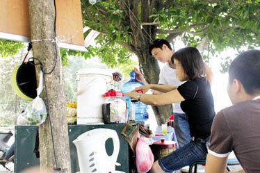 Ở đa số các quán cóc, mỗi cốc trà đá được pha chế chưa đến 10 giây, là thứ nước tổng hợp từ 2 chai nước khác nhau và kèm theo đá lạnh. Gọi một ly trà đá ở quán nước gần cổng ĐH Công đoàn, bà chủ quán mở nắp chai Coca Cola loại 1,5 lít rót nước trắng vào cốc, thả vài cục đá, rồi mở một chai Coca Cola khác có nước màu vàng được cho là nước trà rót một chút lấy màu. Thế là có một ly trà đá. Bà chủ quán khoe: "Trà Thái Nguyên lấy từ lò hẳn hoi". Còn chai nước trắng kia, bà cam đoan là nước sạch. Thế nhưng...