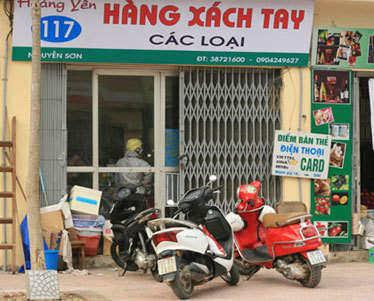 | Một cửa hàng tại chợ “hàng xách tay” trên phố Nguyễn Sơn. (Ảnh: Hà Nội Mới) |