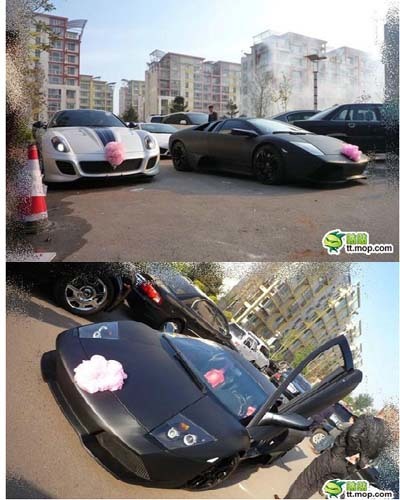 | Đám cưới sử dụng siêu xe gần đây nhất xuất hiện trên đường phố Đường Sơn, tỉnh Hà Bắc, Trung Quốc (Ảnh: Ttmop.com) |