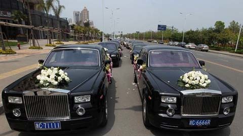 | Hơn 20 chiếc “xế hộp” đang chờ được đón dâu (Ảnh: China Daily) |