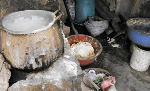 | Nhìn cảnh này, không ít người thốt lên: “Chẳng khác gì nơi nấu... cám lợn”. |