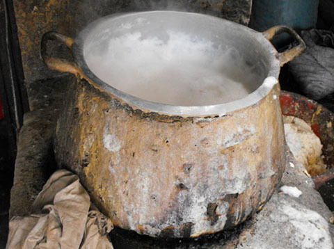 | Nhìn nồi nấu đậu, nhiều người dễ nhầm lẫn với nồi... "cám lợn". |