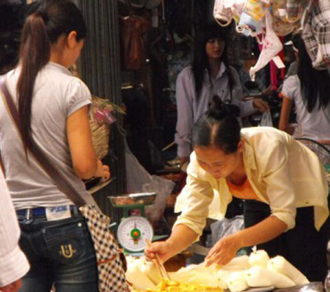 | Để thật tay nặn đậu, hầu như người làm đều dùng tay trần thế này và không có bất kỳ bảo hộ lao động nào. |