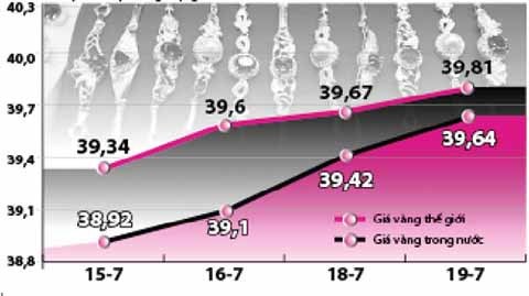 | Ngày 19-7, giá vàng trong nước lập kỷ lục mới 39,75 triệu đồng/lượng, kéo theo