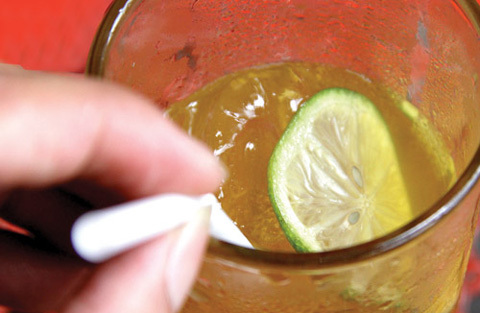 Một ấm trà mạn pha loãng (cho rẻ) kèm một ấm trà chanh (khoảng 3 gói), vài lát chanh, một chút đường. Chỉ bấy nhiêu thôi mà cũng san ra được vài chục cốc trà, mỗi cốc 10.000đ. Điều đáng nói là những chiếc cốc của khách cũ chẳng cần phải tráng, rửa lại, những cục đá tưởng là đá sạch lại lấy ra từ tảng đá lớn để ướp thực phẩm, màu ố, vẩn đục trên từng cục đá vẫn còn, nhưng bị màu vàng của trà che mất.