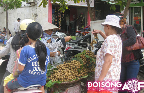 Một hàng rong quảng cáo bán nhãn Hưng Yên sớm với giá chỉ 40.000 đồng/kg rẻ bằng nửa so với giá bán ngay tại vườn ở Hưng Yên. Cửa hàng thu hút khá đông khách là các bà nội trợ mua trên đường Nguyễn Quý Đức (Q. Thanh Xuân).