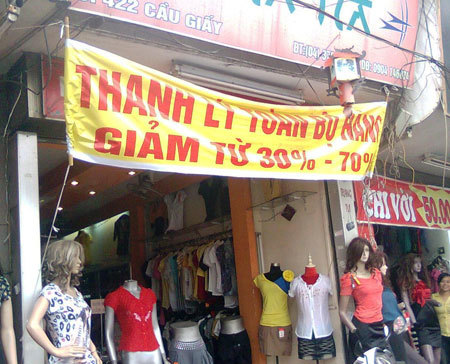 | Các cửa hàng đua nhau giảm giá, thanh lý sản phẩm. |