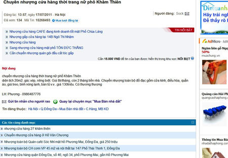 Những mẩu tin rao vặt chuyển nhượng cửa hàng cũng xuất hiện dày đặc trên các