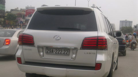 Chiếc Lexus 570 được đeo biển lặp 5 số 2. Đây là biển lặp 5 số thứ hai và cũng là mới nhất hiện nay. (Theo: Vnmedia)