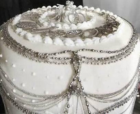Bánh ngọt gồm lớp kem phủ trên bánh ga tô, đồng thời trang hoàng thêm dây chuyền, vòng đeo tay, mặt dây chuyền đều có chất liệu bạch kim, đặc biệt là những đồ vật kim hoàn này hoàn toàn có thể ăn được. Đây là loại bánh ngọt đặc biệt được Nobue Ikara thiết kế giúp những người cuồng bạch kim thỏa cơn khát ngắm nghía.