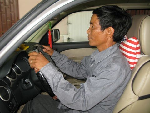 Ông Phạm Văn Coi lái chiếc xe tậu được nhờ trúng kỳ nam |