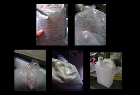 Còn để làm sợi bún dai, người sản xuất này cho hay, có 2 loại chất giúp sợi bún dai. Loại TKL – 40 tạo bún khô, dai, chống ẩm ướt trên bún, kéo dài thời gian bảo quản, chống các vi khuẩn làm hư sản phẩm. Chất này do công ty Gia Trúc nhập khẩu từ Indonesia, giá bán 120.000 đồng/kg, nhưng chính người sản xuất cũng không biết công ty Gia Trúc ở đâu. Loại thứ hai là bột “dai”, nhìn như đường trắng, được đóng vào từng bịch xốp nhỏ không nhãn mác, không địa chỉ, không nguồn gốc xuất xứ. Loại này được bán với giá 100.000đ/kg.