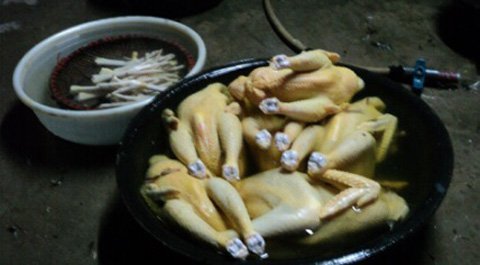 Một chủ hàng chuyên cung ứng gà làm sẵn cho biết:” Để gà có màu vàng tươi ngon, bắt mắt, sau khi vặt lông, rửa sạch, trước khi đem đi phân phối cho các bếp ăn tập thể, khu công nghiệp, quán bình dân,… gà được nhúng vào nồi nước sôi trong đó có hòa trộn một ít bột công nghiệp, loại mà người ta hay quen gọi là “bột sắt”.