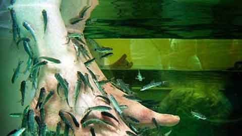 Một loại cá chép nhỏ, có tên là Garra Rufa, sẽ được thả vào một chậu nước ngâm chân để hút các tế bào chết và làm sạch chân bạn. Cách làm đẹp này có nguồn gốc từ Thổ Nhĩ Kỳ và sau đó trở nên phổ biến ở hầu khắp các tiểu bang của Mỹ.