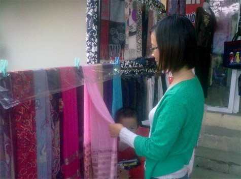 Chiếc khăn quàng cổ mà bà chủ hàng lụa cam đoan rằng đó là “hàng xịn” thực chất chỉ là hàng Trung Quốc chính gốc, trong đó, lớp vỏ ngoài là ni lông và bên ngoài là hàng dạ mỏng, gần giống với vải len.
