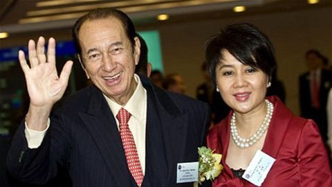 | Tỷ phú Stanley Ho và bà vợ thứ tư Angela Leong. |
