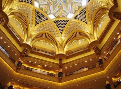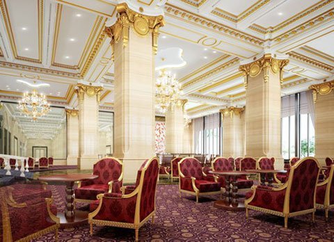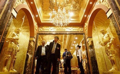 khách sạn được sử dụng vàng 24K để dát trần, tường và các họa tiết trang trí