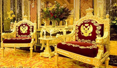 lịch tới đây bởi nội thất từ bàn ghế tới bồn tắm, bồn cầu được làm vàng nguyên