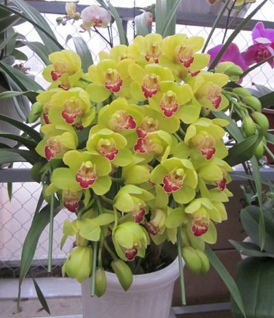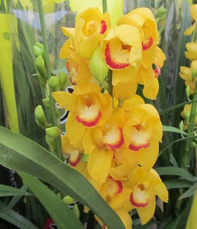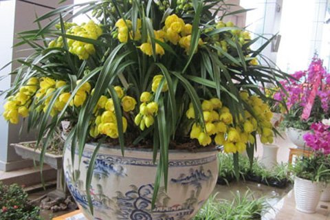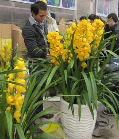 | Các chậu địa lan vàng rất hút khách |