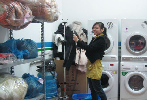 | Các cửa hàng giặt quá tải những ngày giáp Tết. |