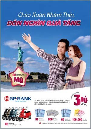 Trong chương trình này, GP.Bank dành tới 6 giải đặc biệt - mỗi giải một chuyến du lịch Mỹ trị giá 160 triệu đồng và hàng nghìn giải thưởng có giá trị khác bao gồm: xe máy Piaggio IE 125 trị giá 70 triệu đồng, sổ tiết kiệm GP.Bank trị giá 3 triệu đồng, thẻ ATM trị giá 500 nghìn đồng.