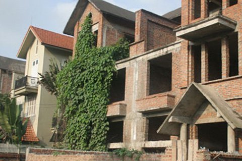 Nhiều căn chỉ xây thô rồi bỏ đấy