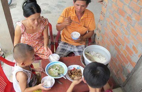 “Trước đây, sáng và trưa còn ăn uống đàng hoàng nhưng từ tuần qua, tôi chỉ ăn xôi hoặc bánh mì “cầm hơi” chờ chiều về mới ăn bữa chính. Vậy mà cuối tháng, có khi cả nhà phải ăn cơm với cá khô, rau xào vì hết tiền” – chị Hồng nói.