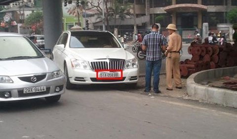 | Maybach 62S trắng đình đám ghé thăm Hà Nội cũng được gắn biển 51A-058.88. |