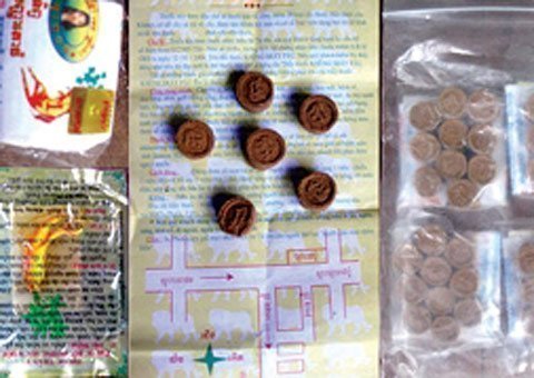 Chị Th. (ở xã Quế Bình) đưa tôi 1 gói, ngoài bao bì đề chữ “Thuốc thần tiên” (còn được gọi là thuốc sư tử). Trên bao bì bằng giấy, một mặt in chữ Campuchia, một mặt ghi tiếng Việt có nội dung: sản phẩm của thầy thuốc Khiêng Sprây Pâu (có địa chỉ ở Phnom Penh) với lời quảng cáo khá hấp dẫn: “Được đặc chế bằng thuốc Bắc, cộng thêm 28 loại cây thuốc thảo dược của người Khơme, có rễ cây và vỏ cây…”, kèm theo đó là công dụng của thuốc, chữa được bách bệnh, từ đau đầu, chóng mặt, viêm xoang đến đau lưng, nhức mỏi, bao tử, thần kinh, da liễu, bệnh phụ nữ, người già...