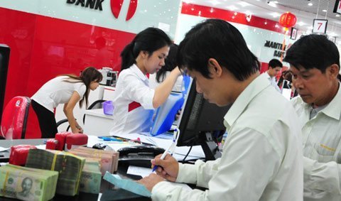 | Khách hàng giao dịch tại một ngân hàng ở quận 1, TP.HCM (ảnh có tính minh họa) |