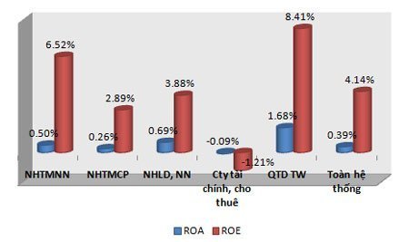 | ROA, ROE của các TCTD đến hết quý II/2012 |