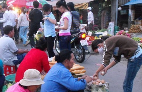 | Với đồng lương ít ỏi, công nhân luôn dè xẻn chi tiêu trong ăn uống (ảnh chụp tại chợ ven đường gần khu công nghiệp Tân Tạo) |