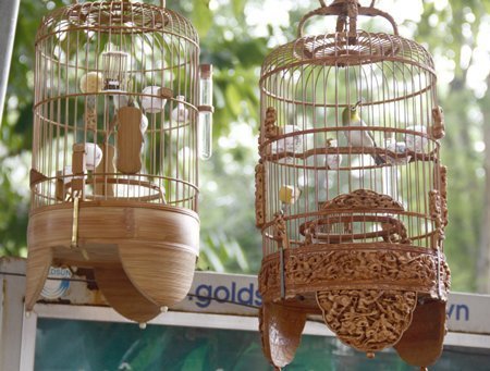 | Chim hay đi thì phải đi với lồng quý. Lồng chim nay có giá vài chục triệu với những chạm khắc tinh xảo |