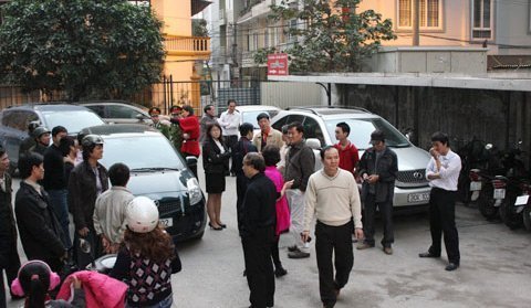 | Người dân chung cư 96 Định Công biểu tình phản đối mức phí trông giữ xe cao hơn so với quy định. |