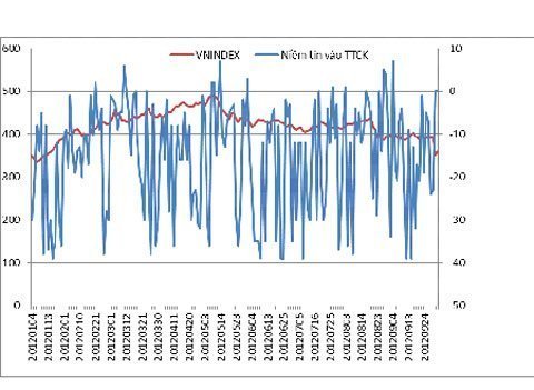 Vietnam Report sử dụng kiểm định Granger (Granger causality test) để xác đinh mối quan hệ nhân quả giữa biến động hàng ngày của VNINDEX trong 9 tháng đầu năm 2012 với chỉ số về suy giảm niềm tin vào thị trường (hiệu số giữa tổng số tin tiêu cực và tin tích cực trên truyền thông) trong cùng giai đoạn này. Kết quả kiểm định cho thấy có quan hệ nhân quả giữa chỉ số niềm tin của thị trường và biến động của giá cổ phiếu (thể hiện qua chỉ số VNIndex). Khi hiệu số giữa lượng tin tiêu cực và tin tích cực về các doanh nghiệp trên thị trường chứng khoán tăng lên, các nhà đầu tư sẽ có xu hướng tháo chạy khỏi thị trường thông qua giảm giá các cổ phiếu mà họ đang nắm giữ.