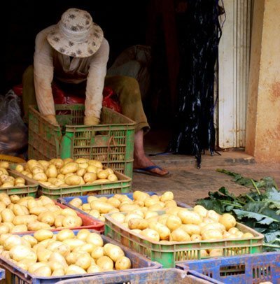 | Khoai tây Trung Quốc được nhập về rồi phơi khô, bôi đất đỏ thành “Khoai tây Đà Lạt”. |