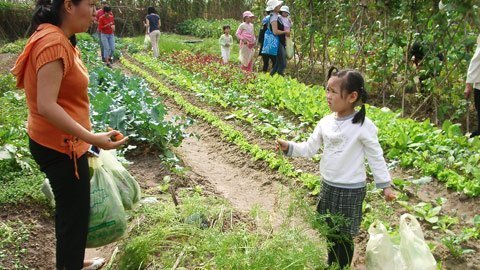Tại vườn rau ở xã Thanh Xuân, Sóc Sơn, Hà Nội, hơn chục người phụ nữ cùng các em nhỏ đang tham quan vườn rau. Nhiều bé thích thú chạy từ vườn nọ sang vườn kia. Chị Bùi Hồng Nga (khu chung cư Lilama, Minh Khai, Hai Bà Trưng) cho hay, mình hay ăn rau sạch tại siêu thị nhưng hôm vừa rồi được bạn bè giới thiệu có rau hữu cơ Thanh Xuân. Vì thế, nhân cuối tuần, mình với con gái đăng ký đi tham quan trực tiếp vườn rau xem rau sản xuất như thế nào, liệu có sạch như giới thiệu hay không. Nhân đây, mẹ con mình cũng mua một ít rau để về nhà ăn dần.