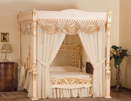 Nhưng khi đó là một trong những chiếc giường đắt giá nhất thế giới, sự hưởng thụ lại ở một cấp độ khác. Và đây chiếc giường đắt nhất thế giới - Baldacchino Supreme với giá 6,3 triệu USD được sản xuất theo yêu cầu của một tỷ phú người Italy (thật đáng buồn là lại giấu tên). Thiết kế mang phong cách hoàng gia thời trung cổ, vòm giường với những chi tiết trang trí nghệ thuật chạm khắc màu kem và vàng, bao bọc với những tấm rèm bằng vải lụa ý thượng hạng, thành đầu giường được trạm khắc bằng kim cương và nhiều loại đá quý khác.