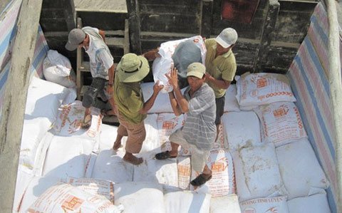 | Đang chuyển gạo lên kho tại chợ Bà Đắc, huyện Cái Bè, Tiền Giang |
