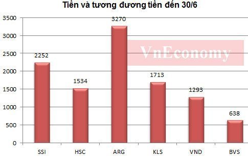 Cũng giống như HSC, 5 công ty chứng khoán còn lại cũng có khoản doanh thu khác chiếm tỷ trọng lớn nhất trong cơ cấu nguồn thu. Với VND, riêng trong quý 2, họ thu về 37,5 tỷ đồng từ tiền lãi gửi ngân hàng. Còn AGR có lượng tiền lên tới 3.000 tỷ đồng gửi ngân hàng lấy lãi, tính đến 30/6.